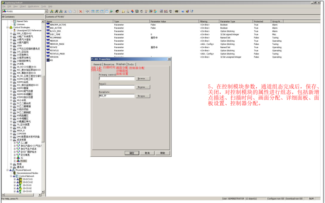 5、在控制模块参数,通道组态完成后,保存、关闭,对控制模块的属性进行组态,包括新增